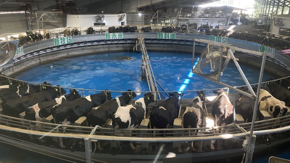 “这个转盘有80个挤奶位,每个位置正好站下一头牛,牛走上挤奶位后,挤奶设备会自动与奶牛对接,自动挤奶就正式开始了!”8月29日,在商丘市虞城县科迪智慧牧场,工作人员介绍着挤奶流程。